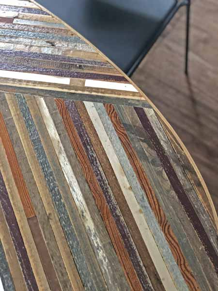 Materiali e lavorazione: Legno di recupero, inserti in rame e strutture in ferro.